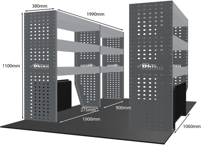 Specifiek voor Uw Voertuig: Elke Rhino MR4 inrichting is op maat gemaakt voor uw specifieke voertuig, waarbij rekening wordt gehouden met de vorm van de carrosserie om de beschikbare ruimte maximaal te benutten.
