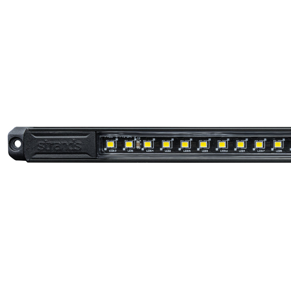 Light up your work vehicle with style. These are Unity interior lights with a unique design. Created to provide you with the most comfortable light with a color temperature of 5000K. This gives you the best working conditions to do your job, regardless of the vehicle it is mounted in. Unity interior lighting is designed and developed to suit any vehicle that requires interior lighting. The product illuminates dark areas, such as cars and trucks, where light may be incomplete. Your work becomes easy with the most comfortable work light, inside your vehicle. The product is available in three sizes, 281mm, 505mm and 953mm. Choose the size that best fits your vehicle. Depending on the size you choose, you get 420, 835 or 1630 actual lumens. The multivolt function of 10-30V DC allows you to mount it on any vehicle that needs interior lighting, such as cars and trucks, or trailers, tractors, construction and agricultural equipment. You get powerful light in a unique interior design, no matter which vehicle you drive - designed especially for you through our passion for innovative lighting. The color temperature of 5000K gives you the most comfortable light to work in, which gives you the best working conditions to do your work. You also get an operating temperature of -35°C to +45°C, and it is waterproof to IP67. The product comes in an aluminum housing and the lens is made of transparent PC (polycarbonate), a very durable material. The product is easy to assemble with the supplied 2.5 m cable and clips or screws. Of course, it is covered by Strands Lighting Division's unique three-year functionality warranty